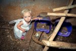 They are always outside, either chasing cattle together with their parents or playing with chickens or just rolling in the grass!